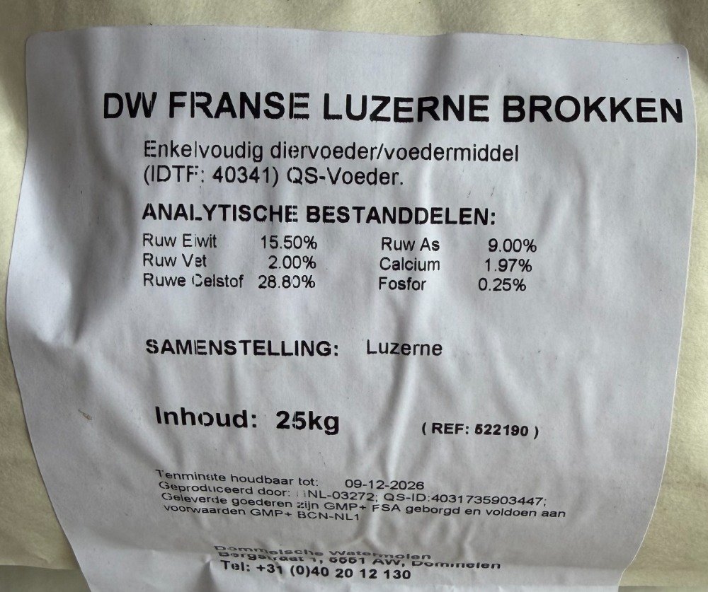 Tevens is de luzerne brok zeer goed om in te zetten om normaal gewicht te behouden.