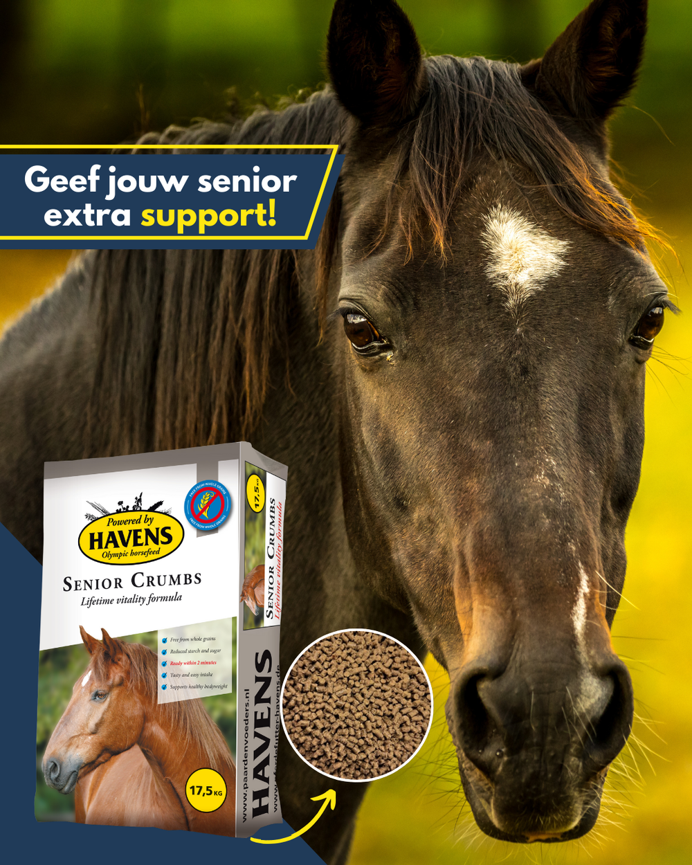 SENIOR CRUMBS: speciaal afgestemd op de voedingsbehoeften van oude(re) paarden.